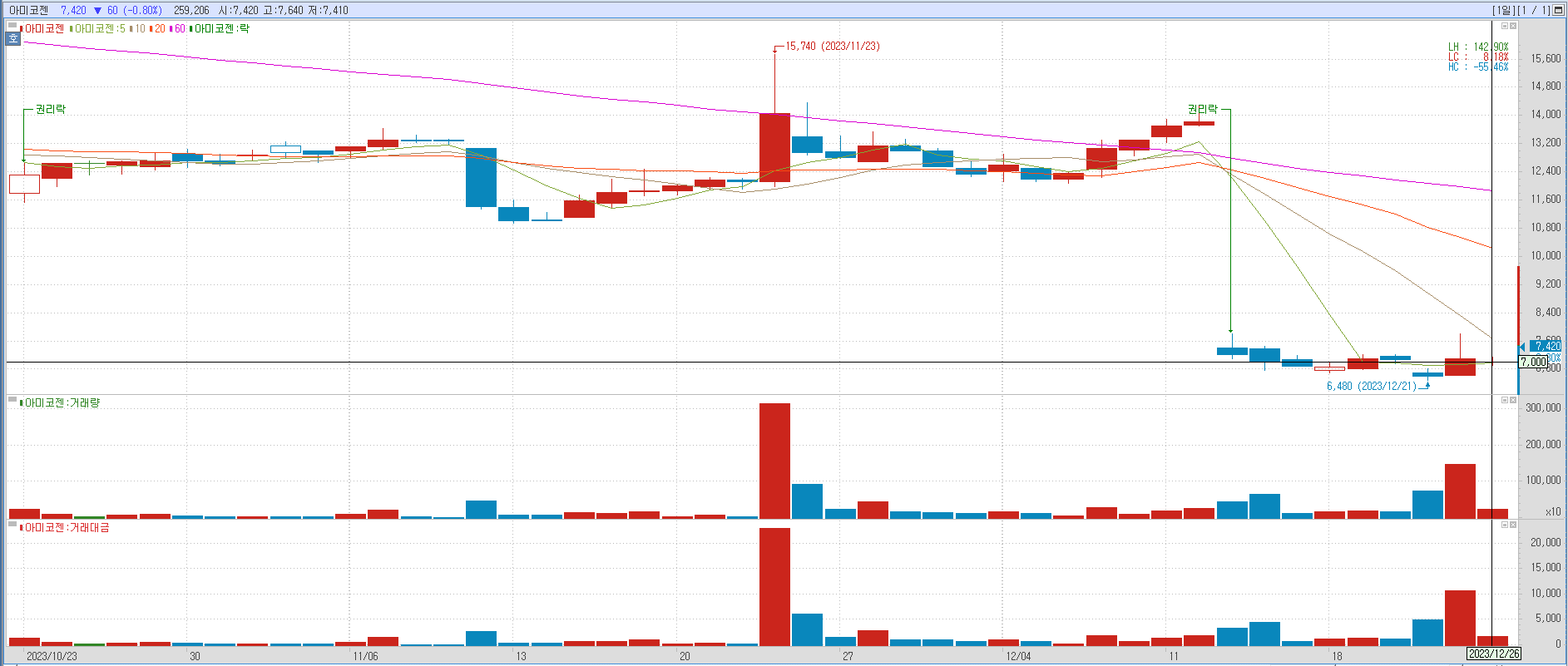 유상증자주가기록)아미코젠